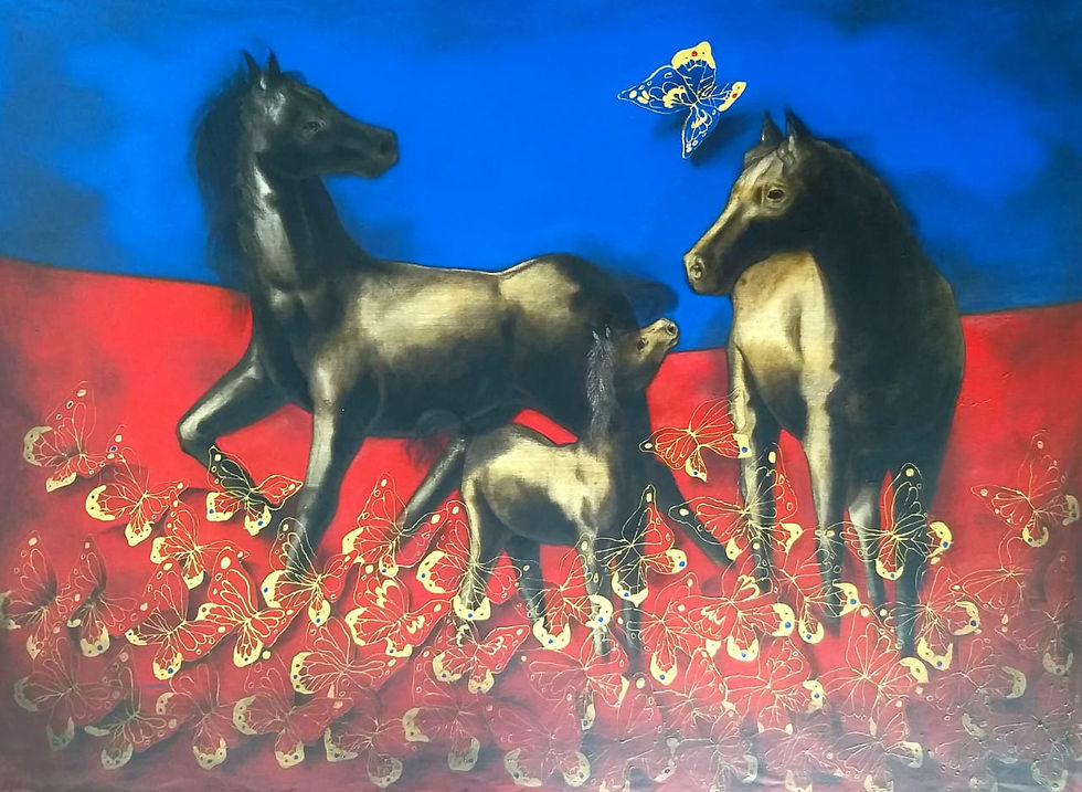 Horses in Bloom_48''x36''- Mixed Media on Canvas